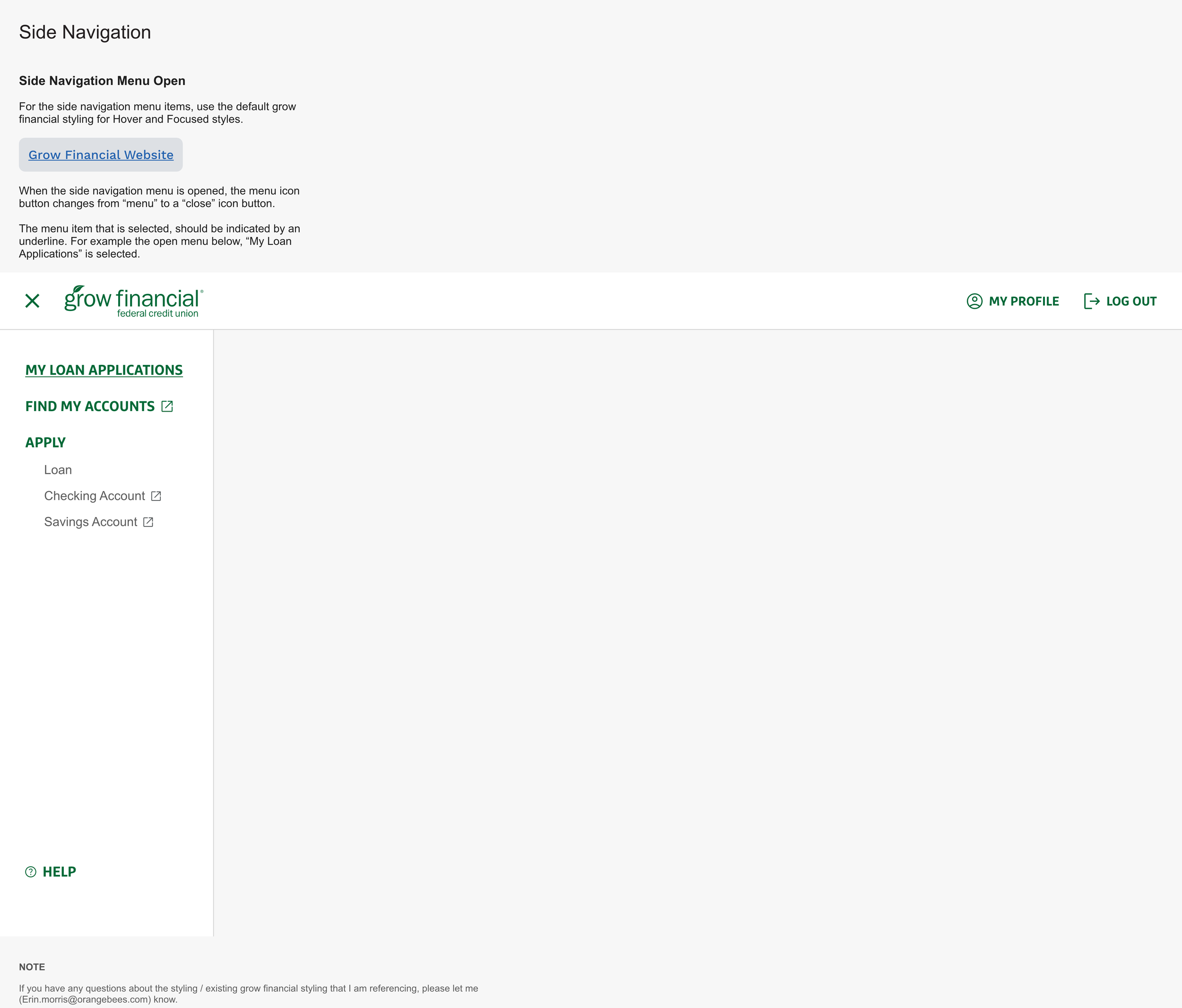Grow Financial, a financial services provider, was seeking to integrate a loan application management system into their existing services platform. My responsibilities included creating wireframes, mockups, and a style guide to ensure the design intent was implemented.
