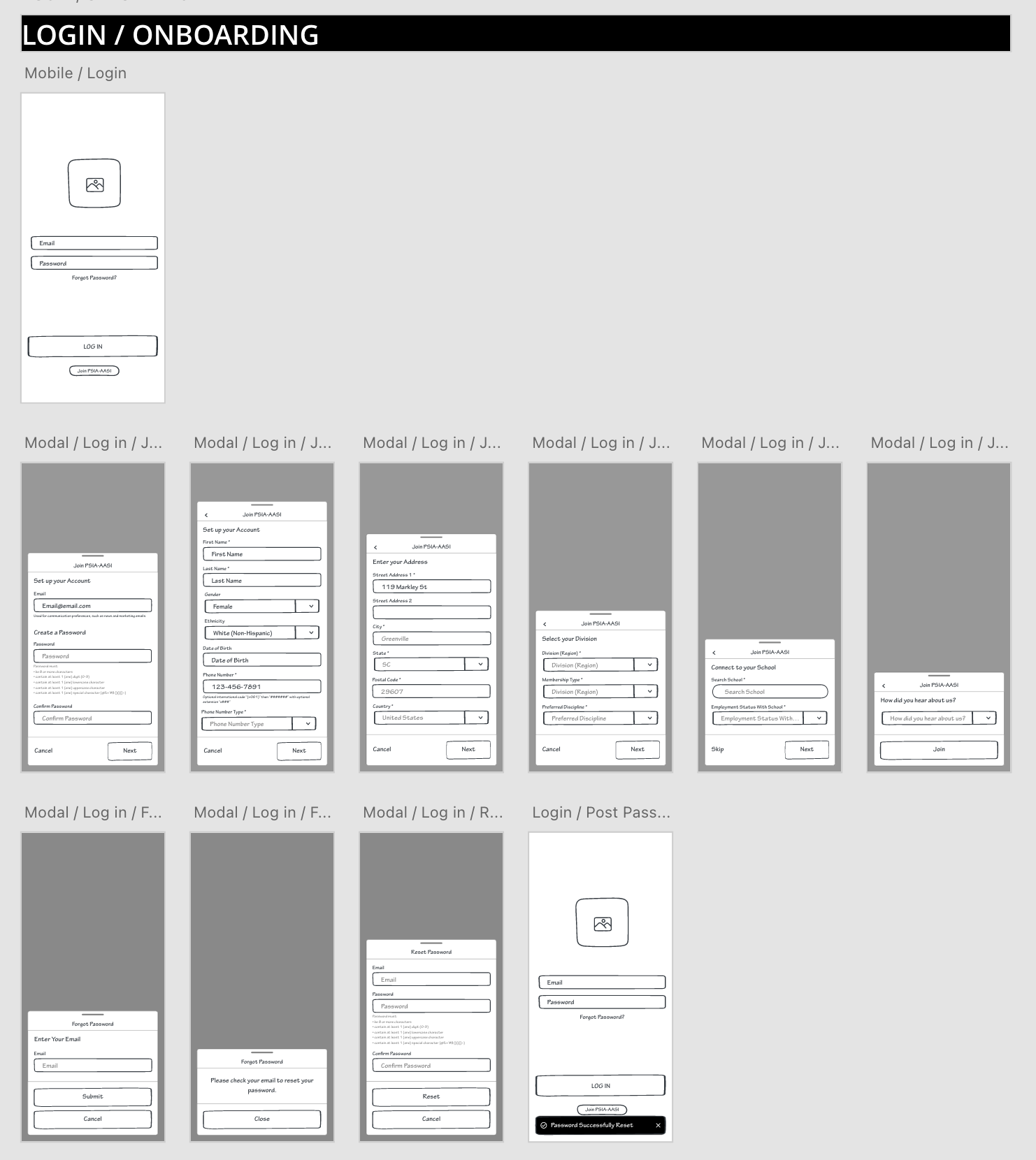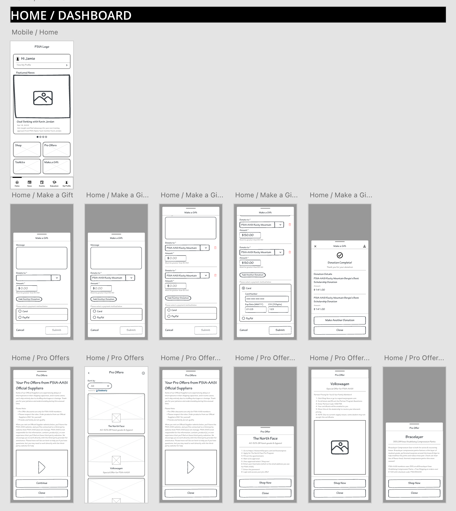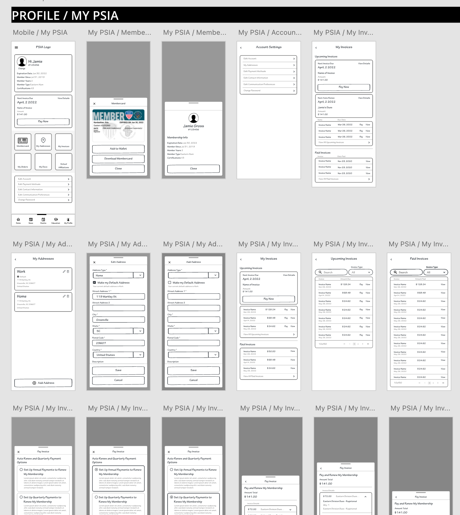 At completion of the discovery phase, I had the necessary knowledge to construct wireframes. I referenced the site map as well as the client’s existing applications while building out the wireframes.