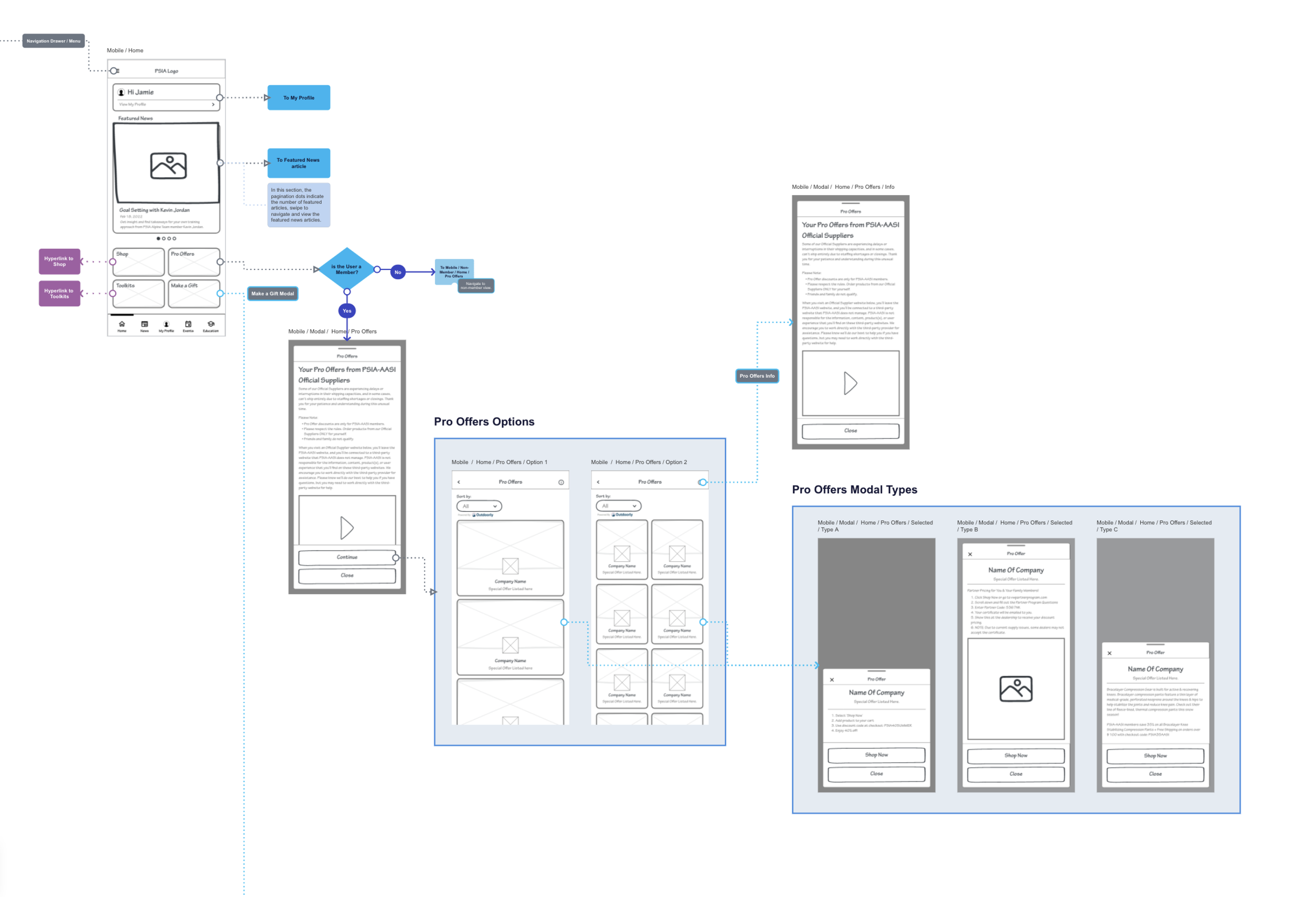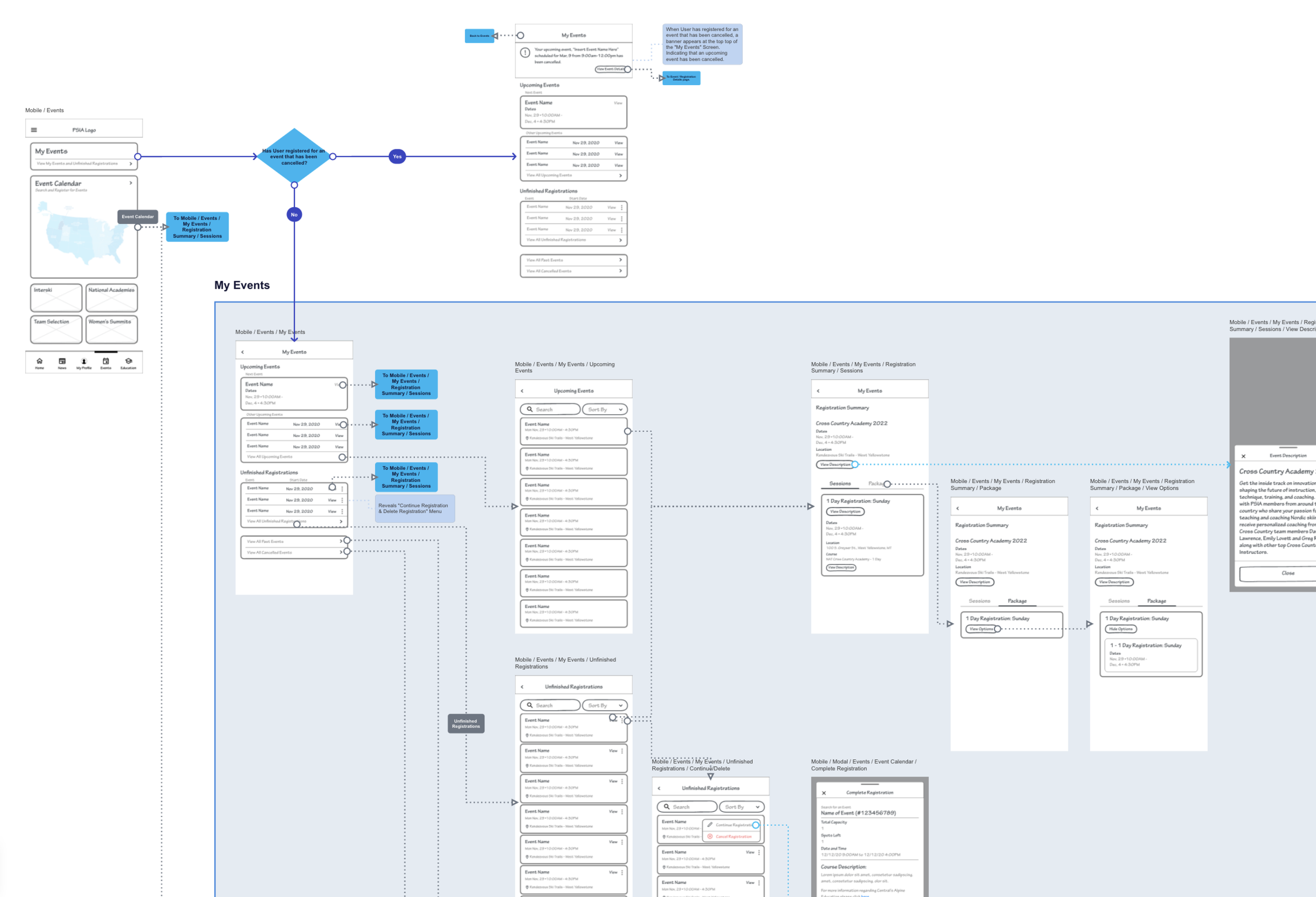 Due to the complexity of the application and multiple sets of users, more than a “clickable” prototype or wireframe needed to be created to account for all of the use cases and potential avenues to navigate throughout the application. Below are a few examples of some of the user flows I created to hand off to development as part of the design intent.